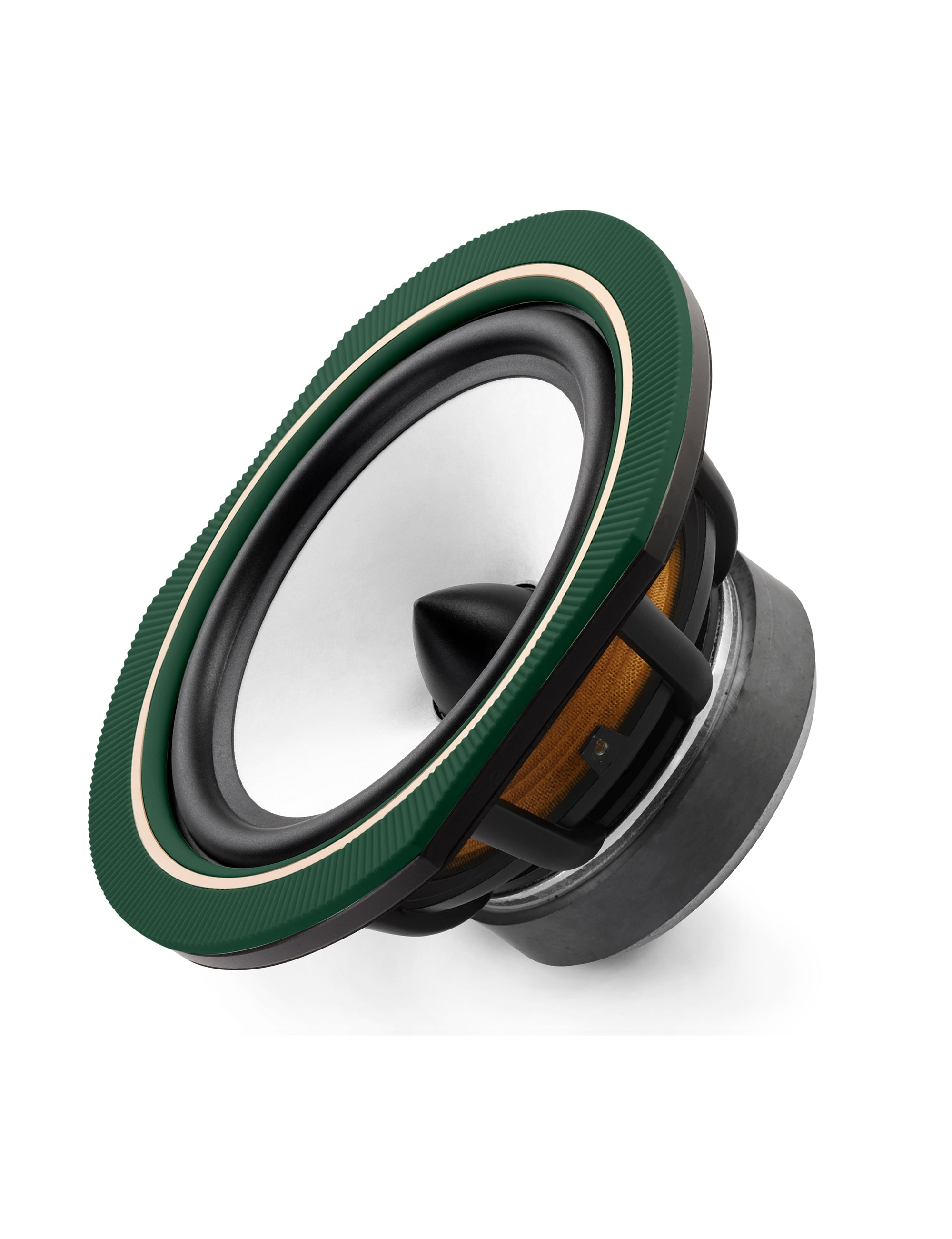 Este altavoz cuenta con un chasis de aluminio ventilado y una suspensión de medio rollo compuesta por espuma y caucho tratado. Esto permite una reproducción natural de voces e instrumentos con una hermosa apertura, a la vez que ofrece graves generosos y dinámicos.