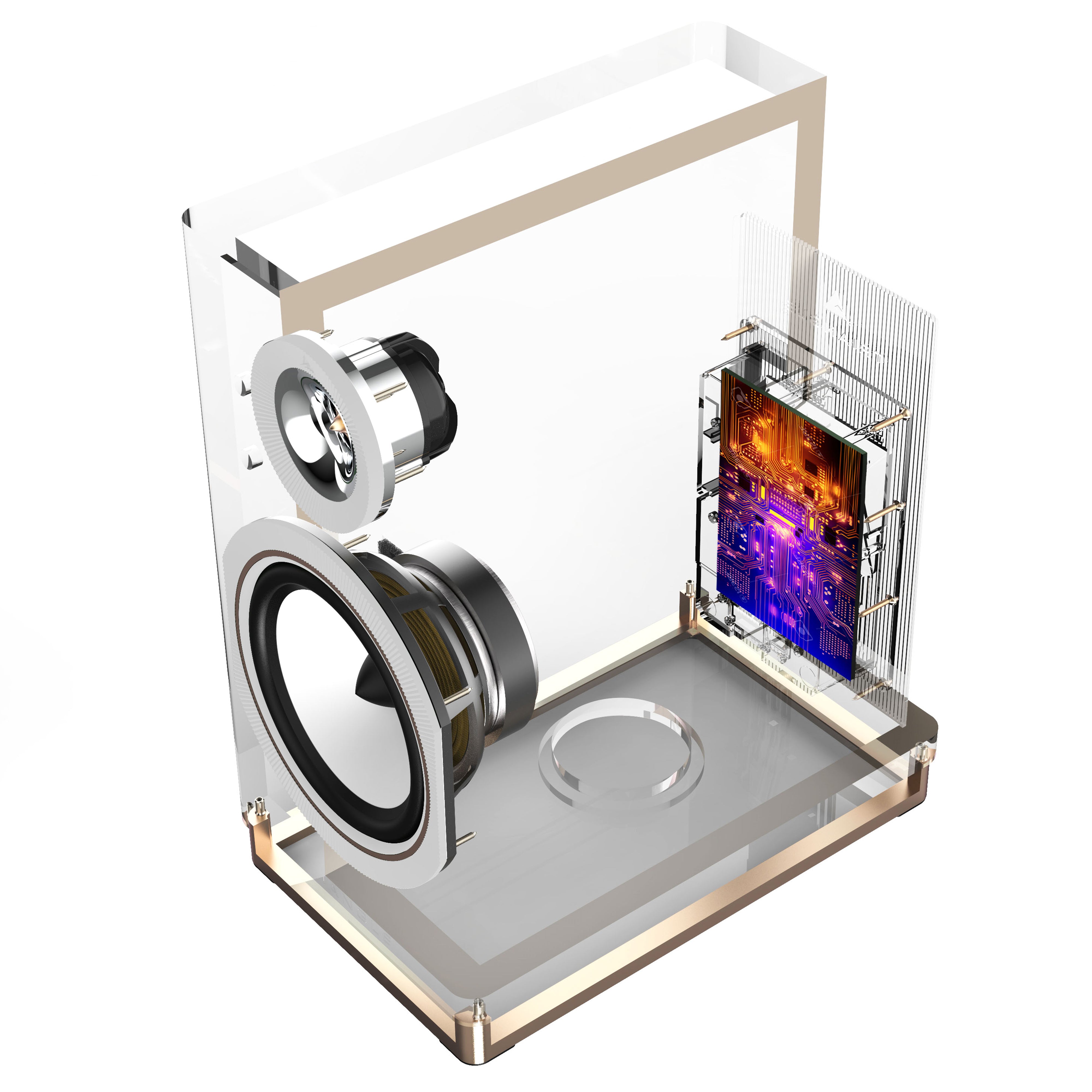 Más allá de su atractivo estético, el borde redondeado de los gabinetes cumple una función importante. El panel frontal que soporta el altavoz difracta naturalmente las ondas sonoras, interrumpiendo así la señal de audio enviada al oyente.