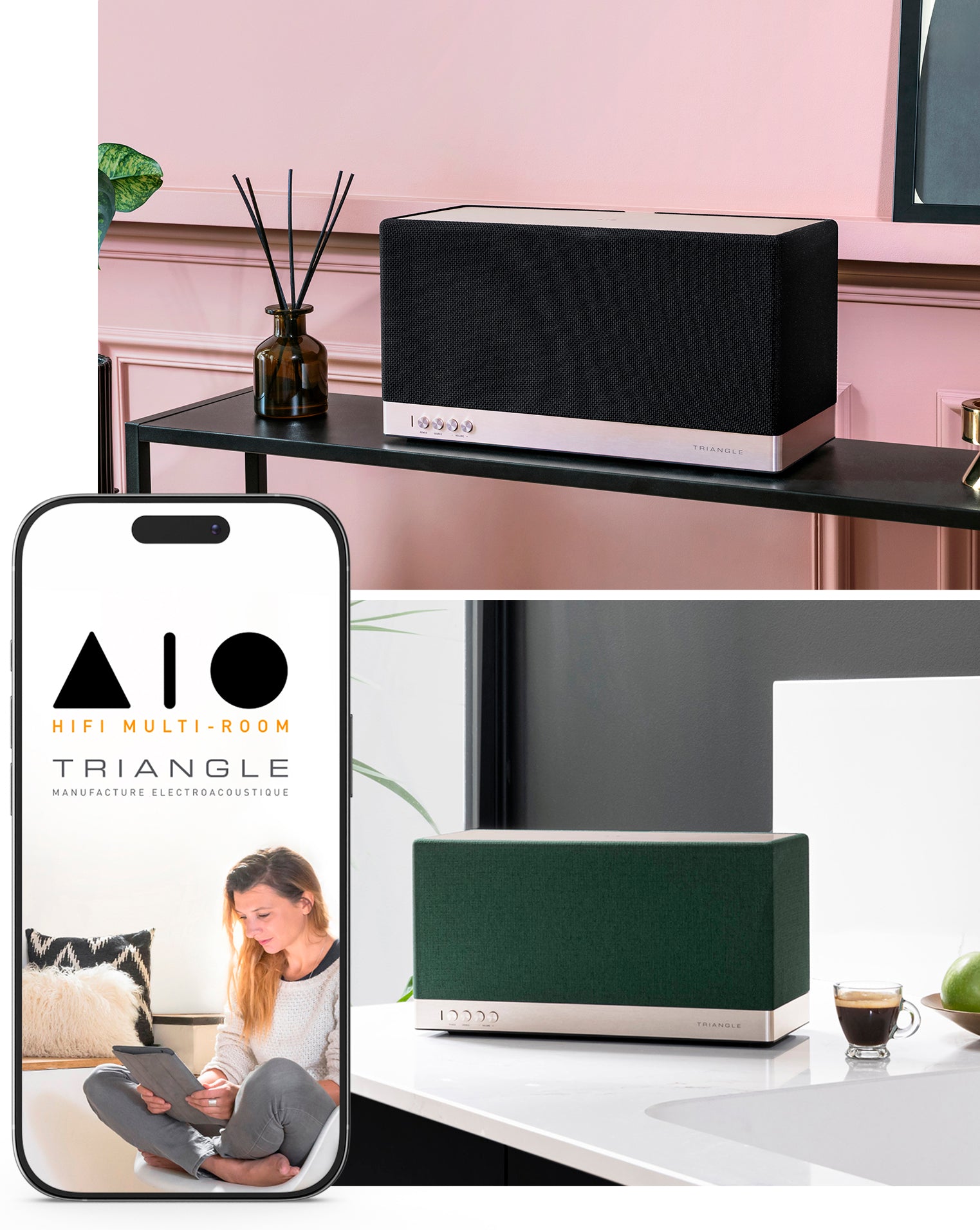 Pilotez jusqu’à 12 appareils via l’application TRIANGLE AIO, diffusez la même musique d’une pièce à l’autre ou créer au contraire deux univers musicaux différents.